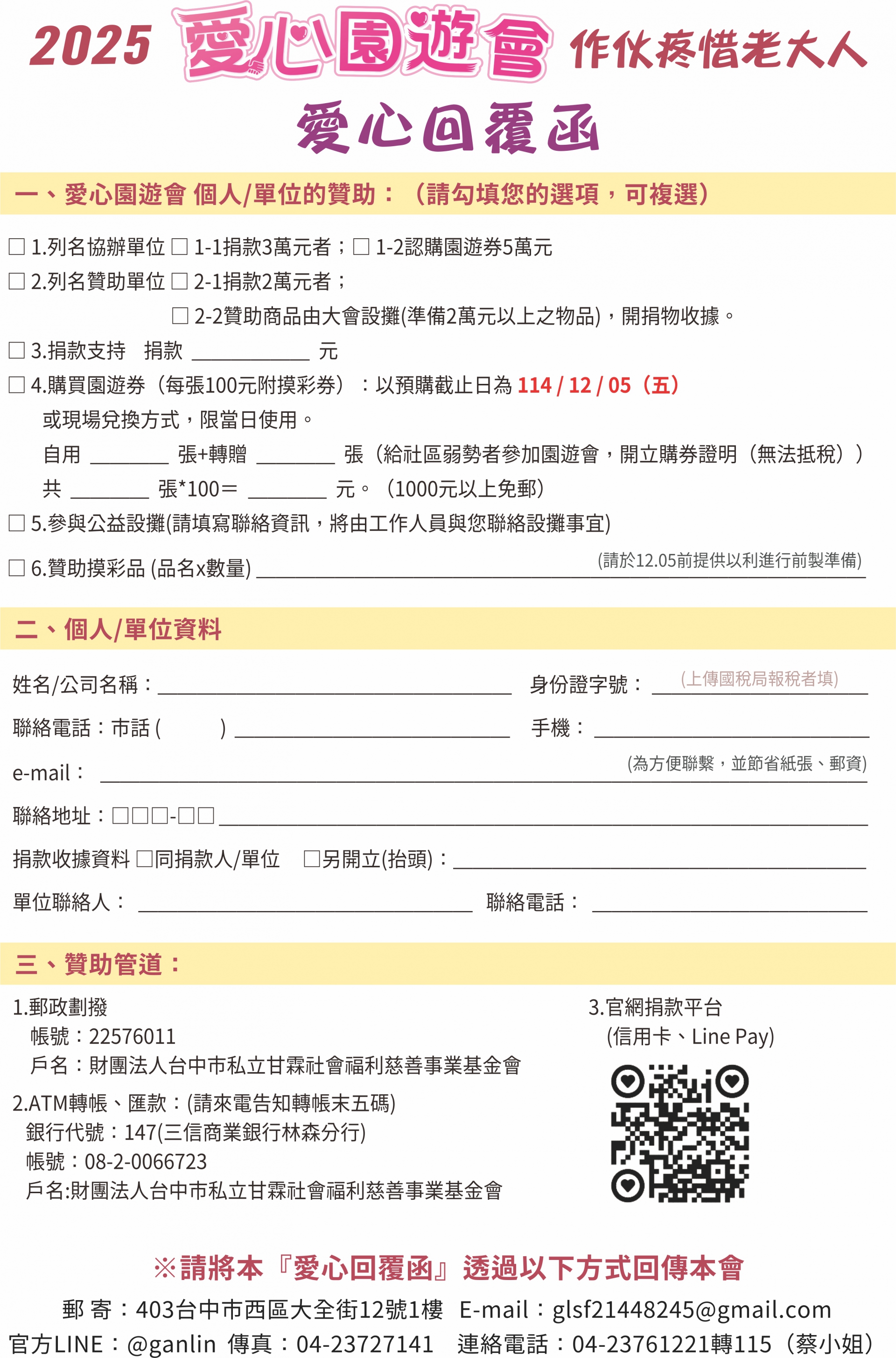 - 擺攤報名:企業、團體免費設攤,攤位所得全數捐作老人服務使用(可開立抵稅收據)