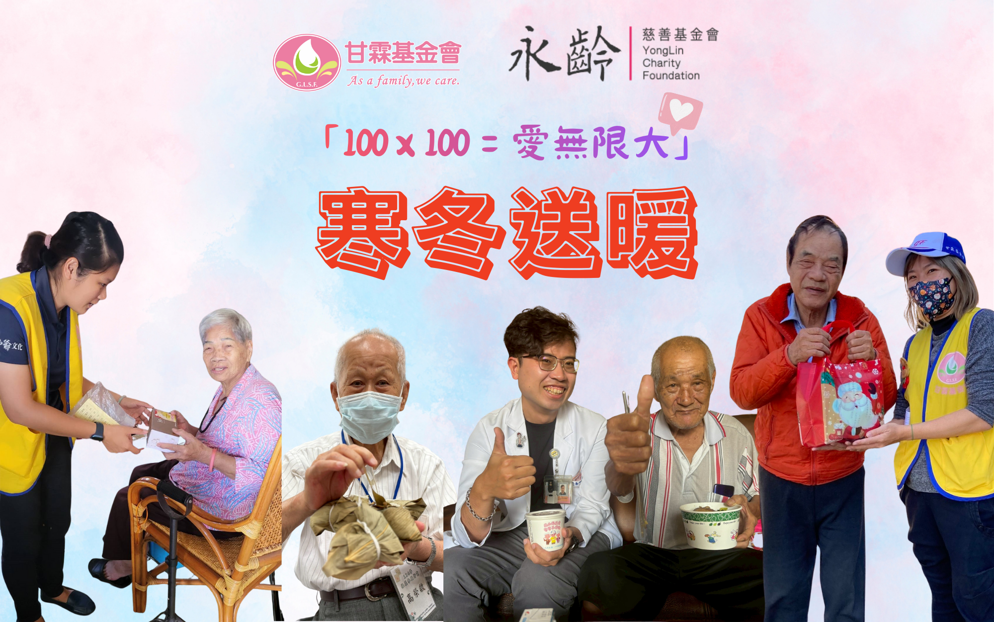 謝謝 永齡基金會 用行動在寒冬點亮愛! 永齡基金會以「100 x 100 = 愛無限大」的溫暖行動,捐款100萬元實質支持甘霖基金會服務台中市的弱勢獨居長輩與身心障礙者。 本次捐助款項全數專款專用,投入「送...