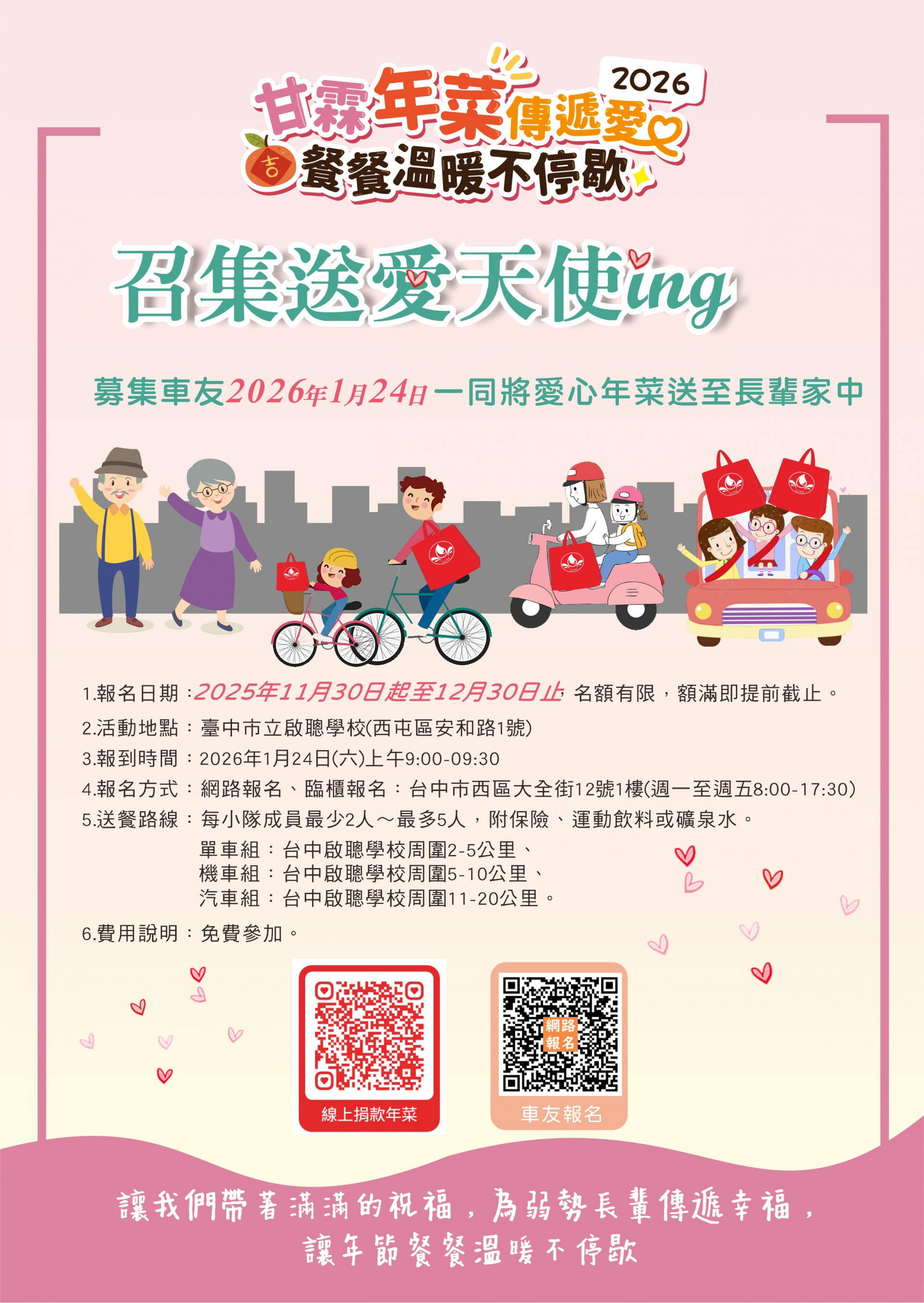 邀您報名 1/24 年菜配送車隊,用雙手親自把祝福送到長輩家門口,
